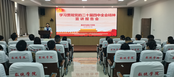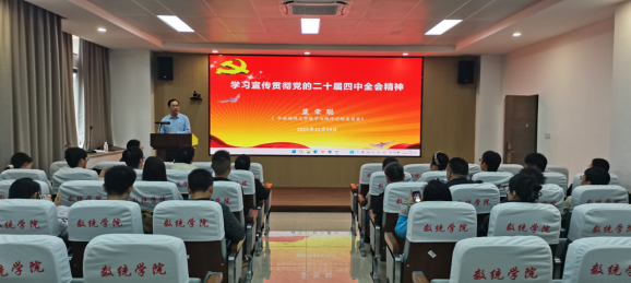 党委在院208报告厅举办党的二十届四中全会精神宣讲报告会。学院党委书记郑世珠主持会议,党委副书记蓝荣聪教授领学全会精神,学院党委委员、各师生党支部书记及支部委员参会学习。