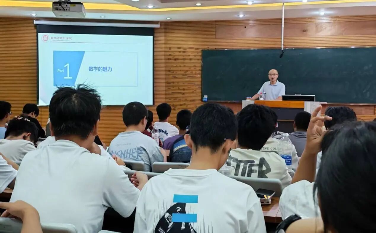 ”主题讲座,为2025级新生播撒智慧火种。讲座由学院副院长程航教授主讲,数学类二班李思扬同学主持,数学类及经济统计学专业全体新生到场聆听。