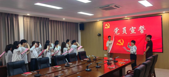 随后,新发展的党员们佩戴上象征身份与使命的党徽,在魏凤英同志的带领下,神情肃穆、右手握拳,面向鲜红党旗庄严宣誓:“我志愿加入中国共产党,拥护党的纲领,遵守党的章程…… 随时准备为党和人民牺牲一切,永不叛党。”铿锵有力的誓言在会议室久久回荡,彰显着新发展党员对党的无限忠诚与为共产主义事业奋斗终身的坚定决心。