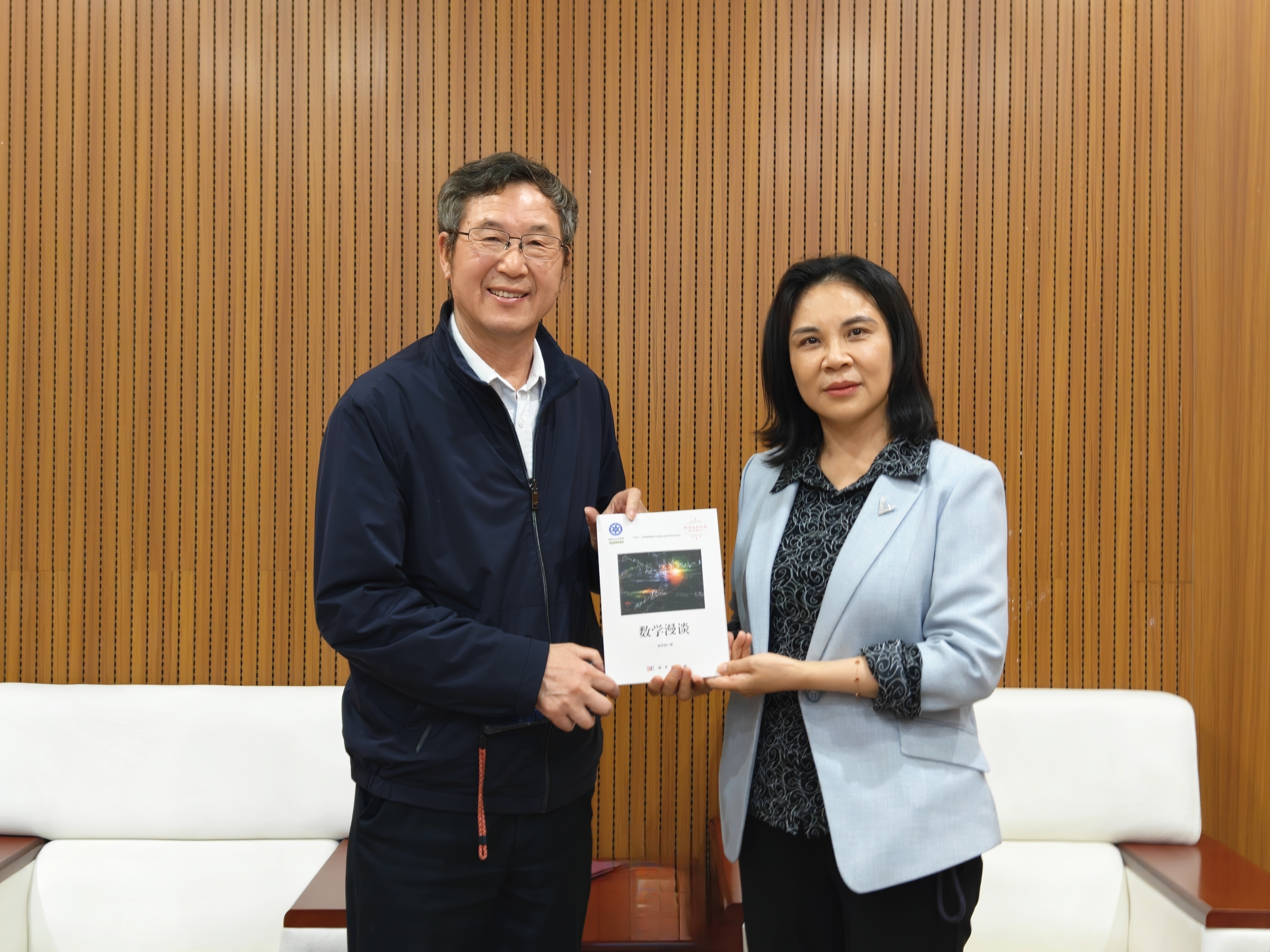 嘉锡讲坛”荣誉证书,袁亚湘院士向吴明红院士赠送了个人科普著作《数学漫谈》。副校长卢孝强、成人导航