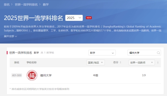 近日,高等教育评价专业机构软科正式发布了2025“软科世界一流学科排名”。成人导航 数学学科发展迈上新台阶,首次跻身榜单,位列全球401-500区间。